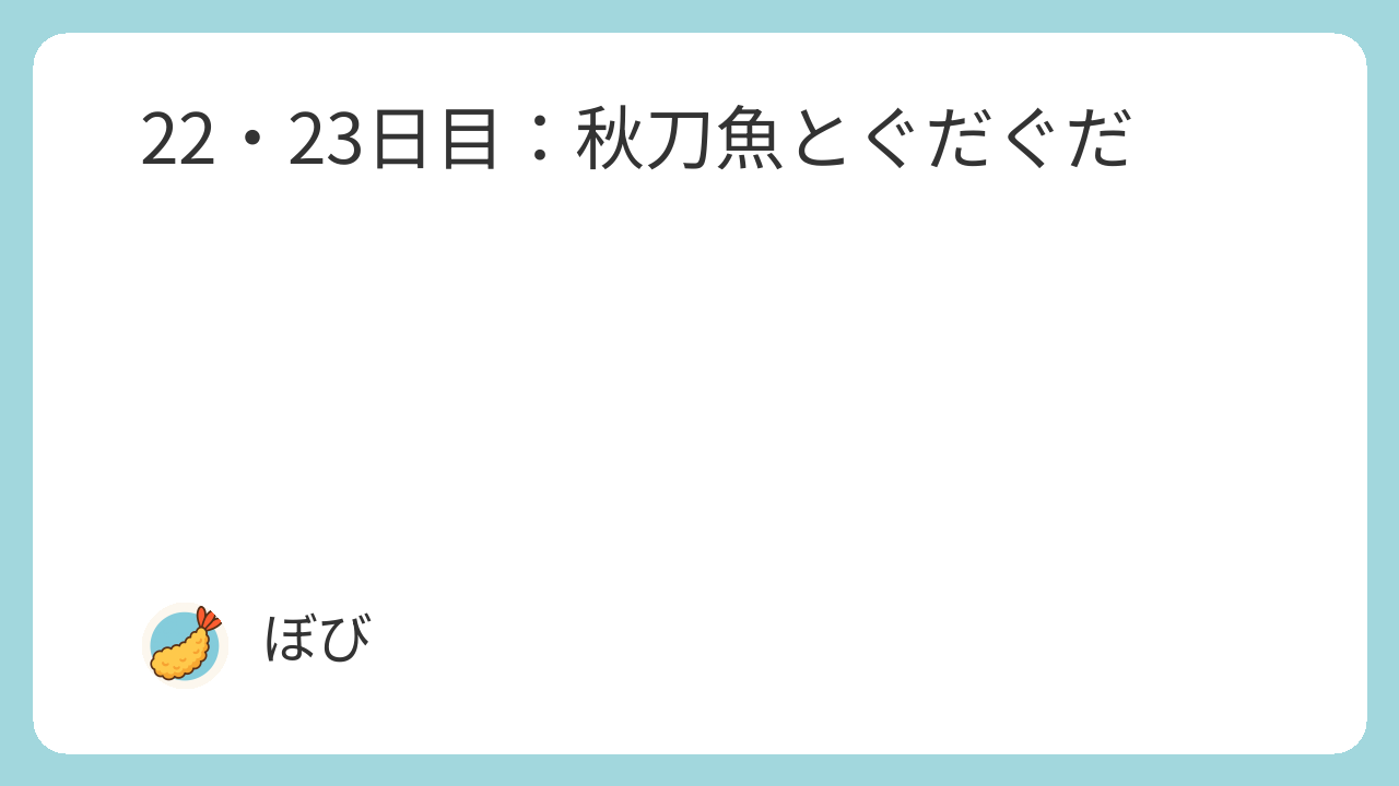 実家でまったり。散歩がてら秋刀魚を買いに近くのスーパーへ。気温も涼しくなっていい気分。立派でおいしかった。