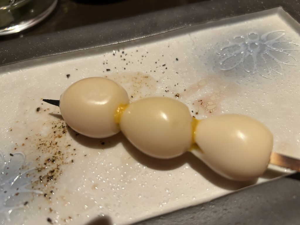夜は名古屋で焼き鳥。落ち着いた店で、名古屋コーチンを堪能。特にうずら卵の串がおいしかった。名古屋コーチンじゃないけど。。。w