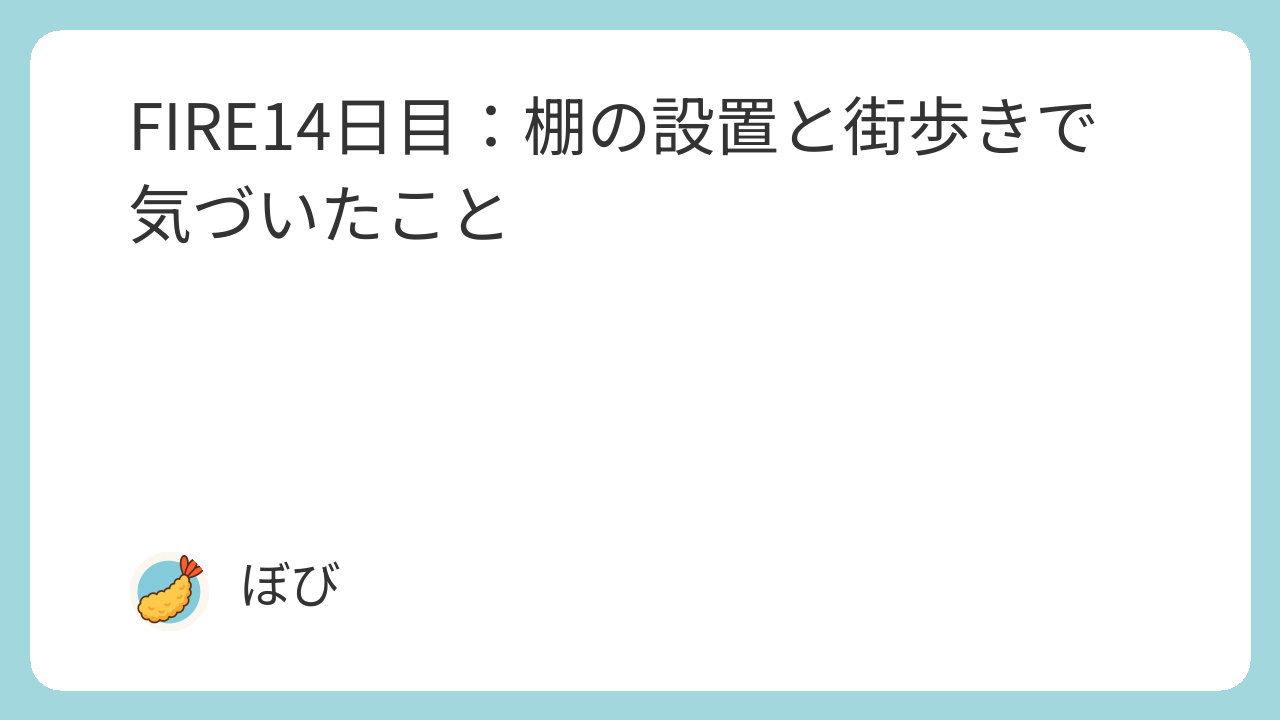 帰宅後、横になったらそのまま寝てしまった。散歩しかしてないのに…体力が落ちてきているのを実感。最近は買い物ばかりで金銭的にも良くないし、することがないのもストレスになっている気がする。