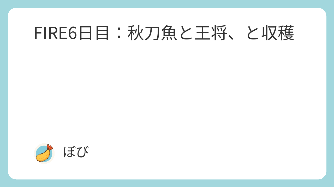 FIRE生活6日目。台風が過ぎて、今日は少し涼しい。